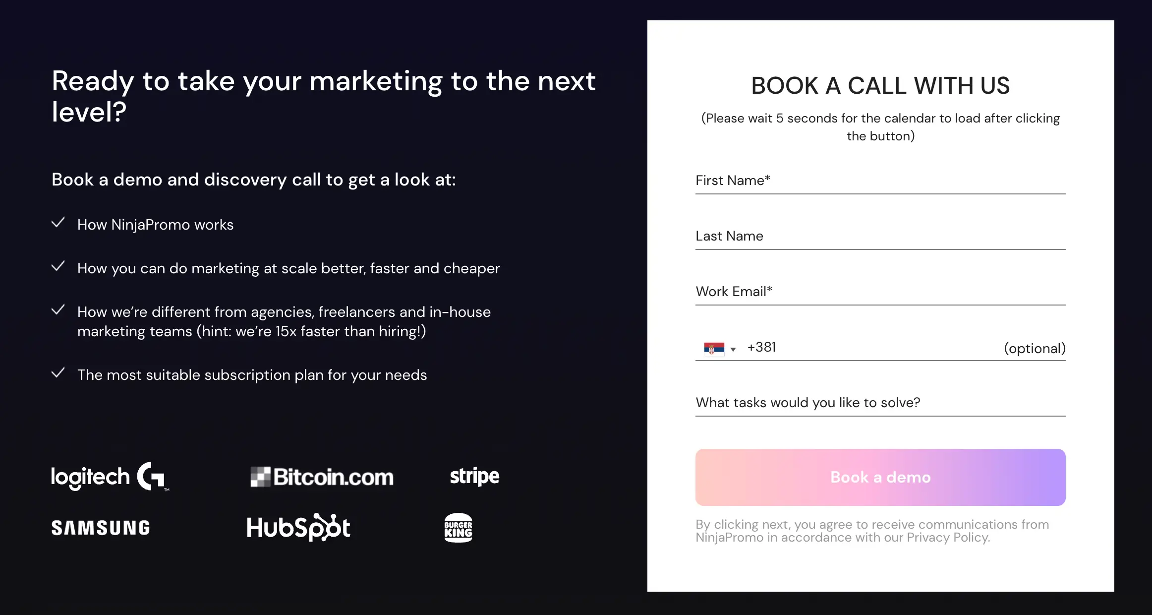 The form field “What tasks would you like to solve” is a great start for some individually in this form but not enough especially as the field itself is too low in height meaning not a traditional user might think it’s only for brief responses.